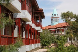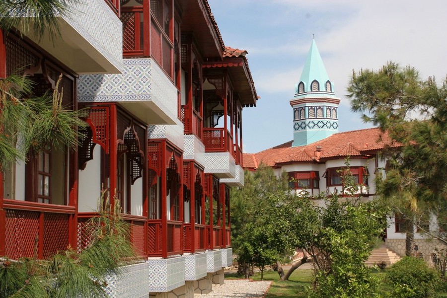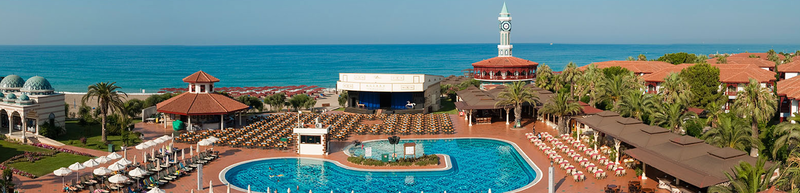 Der Club liegt direkt am Meer, an einem langen, breiten Sand-/Kiesstrand und an Pinien und Eukalyptuswäldern. Nach Manavgat sind es 12 km, nach Side mit seinen vielen Einkaufsmöglichkeiten und antiken Stätten 17 km. Die außergewöhnliche Viersterne-Clubanlage mit 30 Gästehäusern wurde im osmanischen Stil in einer herrlichen Gartenanlage erbaut. Das orientalische Ambiente gibt dieser Anlage einen unverwechselbaren Charme. Hier finden Sie das größte Tenniscamp Europas und das professionelle Fitness First Studio - optimalen Voraussetzungen für einen sportiven Urlaub. Im Zentrum des Resorts befinden sich das Hauptrestaurant, Cafés, eine Einkaufspassage und die großen Süßwasserpools.