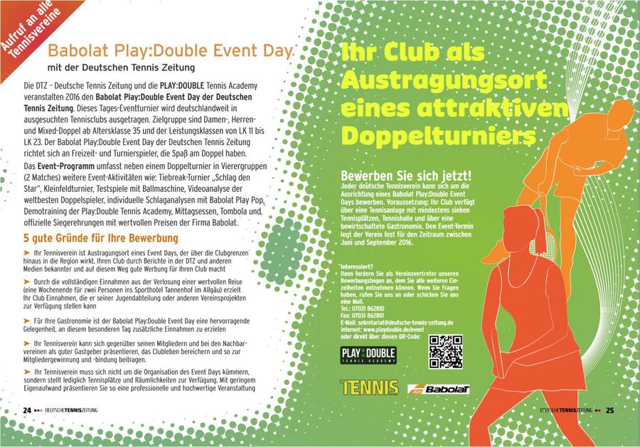 Willkommen bei den Babolat Play:Double Event Days 2016 der Deutschen Tennis Zeitung