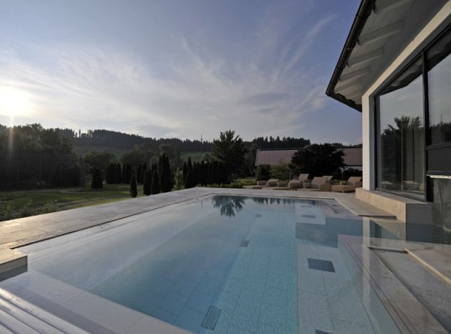 In der Badelandschaft erwartet Sie ein großes Hallenbad mit Gegenstrom-Schwimmanlage, ein Whirlpool, 2 Saunen, ein Dampfbad, großzügige Ruheräume und ein solarbeheiztes Freibad im Hotelpark. |